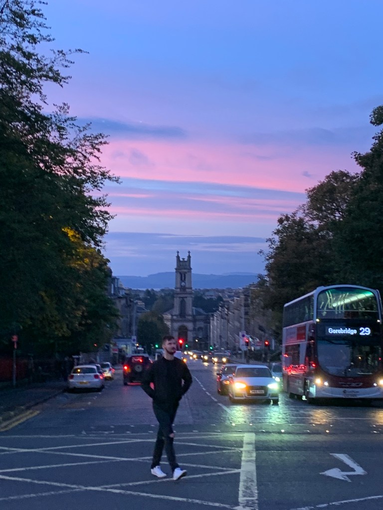 Earrings: Molded, acrylic hexagonal hoops that cheat pale jade in the light, but are closer to the color of glow in the dark stars we stuck to the ceiling at Dad’s apartment when my parents divorced. I found these earrings at ALC, a boutique in Edinburgh on Thistle Street back in October of 2019. They were the last thing I bought on that trip (after spending much of the day looking for a very particular Parisian gin I’d been tasked with finding for a friend back in Carrboro). I saw them in the window and, for what was neither the first nor likely the last time, misread the 9 on the price tag as a 4 and by the time I figured it out (or calculated the exchange rate) I’d already handed the cashier a credit card. I’m not mad about how much I paid. These are literally among my three or four favorite pairs of earrings. When I wear them I have nothing but good memories of skittering around Edinburgh on a cool breeze through a fading October twilight.