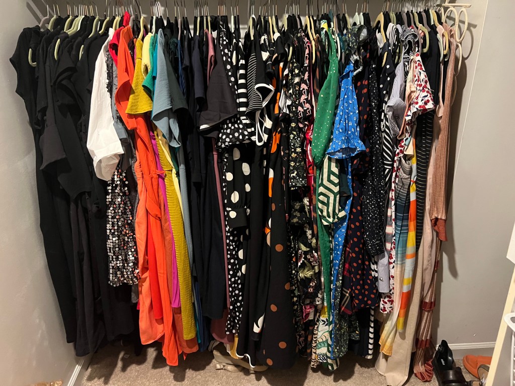 Shoes: A few years ago, after I turned 40, I went through a few years where I spent too much money on fancy sneakers (cheaper than sportscars, cleaner than affairs). It had come, rapidly, to my attention that high heels were not something I could do so much of anymore and there were occasions and seasons for which neither boots nor sandals were appropriate. Due to age and general irrelevancy, I didn’t really get that Vejas were a thing. I saw them on the feet of a girl standing beside me at a Giant Dog show at Cat’s Cradle and thought, “huh, those are cute.” Then I came home, googled “Leather Sneakers Giant V” and read about how a Vogue writer thought they were uncomfortable, but more comfortable than Chuck Taylors, and I bought the ones with the shiny avocado green V as an advance Xmas present for myself in December of 2019.