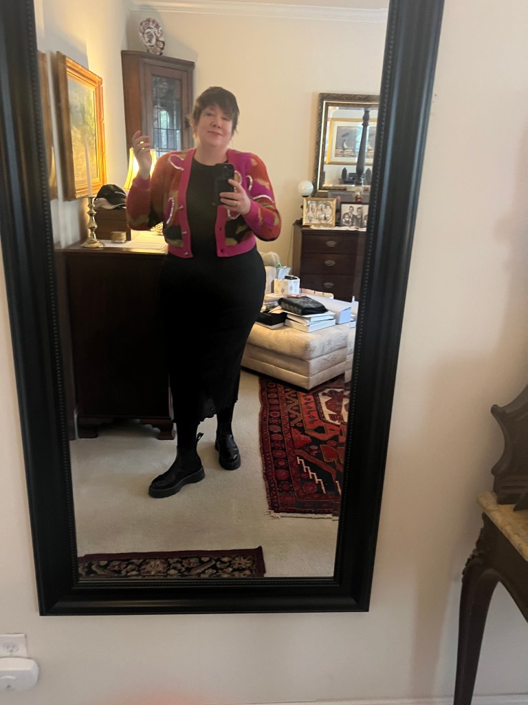 Anyway, as of December 27, 2023, this dress still had the tags on it, and I thought it was high time I put it to use. I was going to wear it to go out with my best friend in New York. Might as well wear it to hang with her in Asheville.