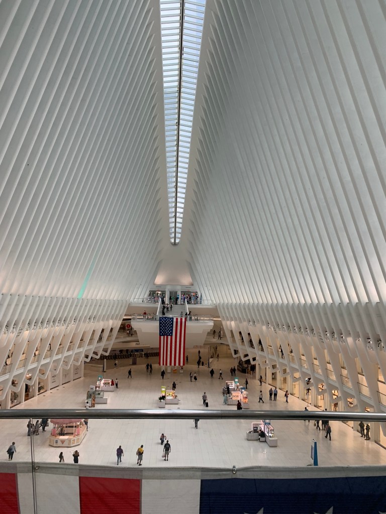 COS, if you’re unfamiliar, is the more upscale, minimalist Scandinavian gallery owner aunt in the H&M family. They make the kind of clothes you might be into if you like to use architectural terms to describe the shape of your blouse. The Oculus, is what happens someone makes you ride Space Mountain 4000 times and then immediately gives you 4 billion dollars and tells you to create a mall and a transit hub. It’s the kind of place you might be into if you’re like what if they put an Eataly in the bleached ribcage of a Lovecraftian Horror?