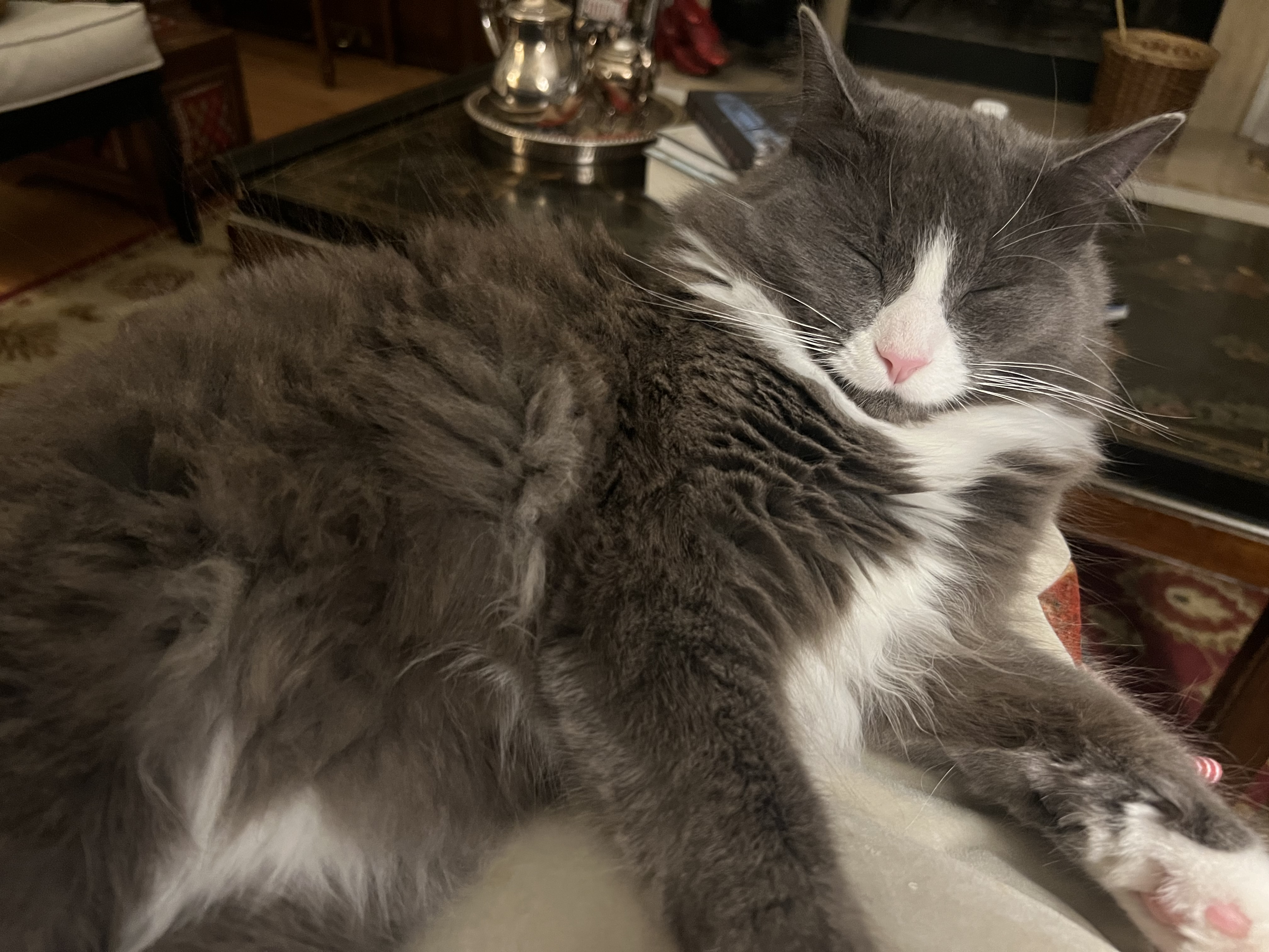 Also a fan of this sweater: the almost-not-kittens-anymore kittens, who also sometimes look and feel like the sweetest gray clouds in the world.