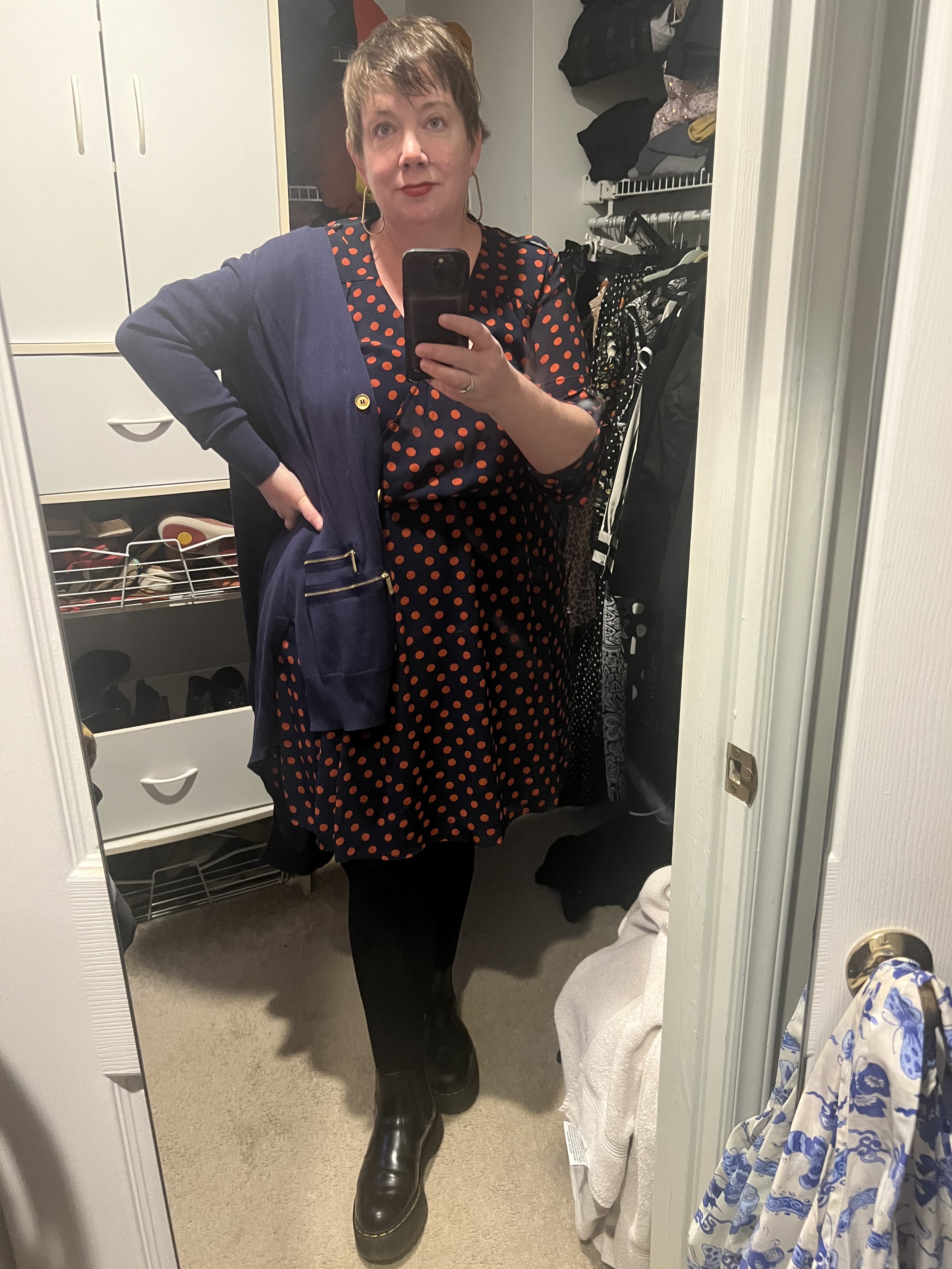 Outfit: I wore this to Target, where I wandered around for a goodly period of time and bought nothing but a single tube of lipstick, a box of Altoids, and some kitty litter.