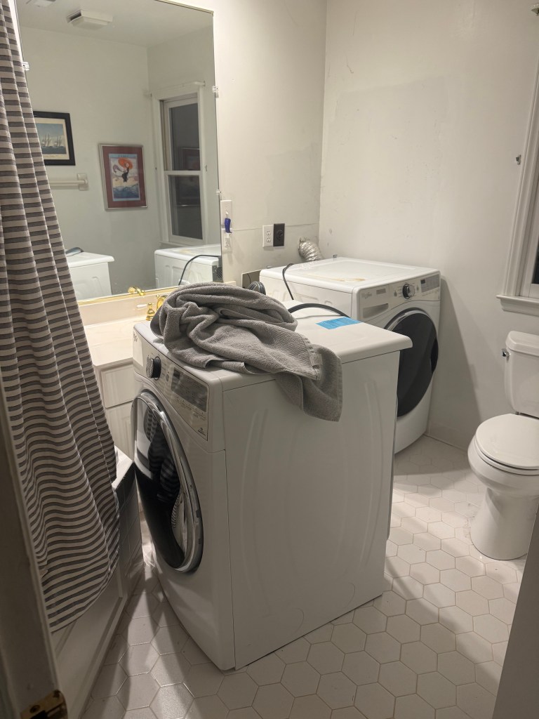 About three weeks ago, the washer shit the bed at maybe the least opportune time in my calendar year. The first two appliance repairmen I called told me I would need to unstack the units myself, pull them out from the wall, and remove the toilet before they would even take a look. I laughed because I couldn’t cry. I did laundry at friends’ houses. I visited the laundromat. After Thanksgiving, I called the plumber in desperation. I figured, “maybe they can move the toilet at least.” They didn’t have to. They were nice. They unstacked the washer dryer, declared the situation above their pay grade and recommended a third appliance guy. That guy was busy but recommended a fourth appliance guy took one look at the bathroom and said, “Wow, somebody is really into big bubble baths, right?”