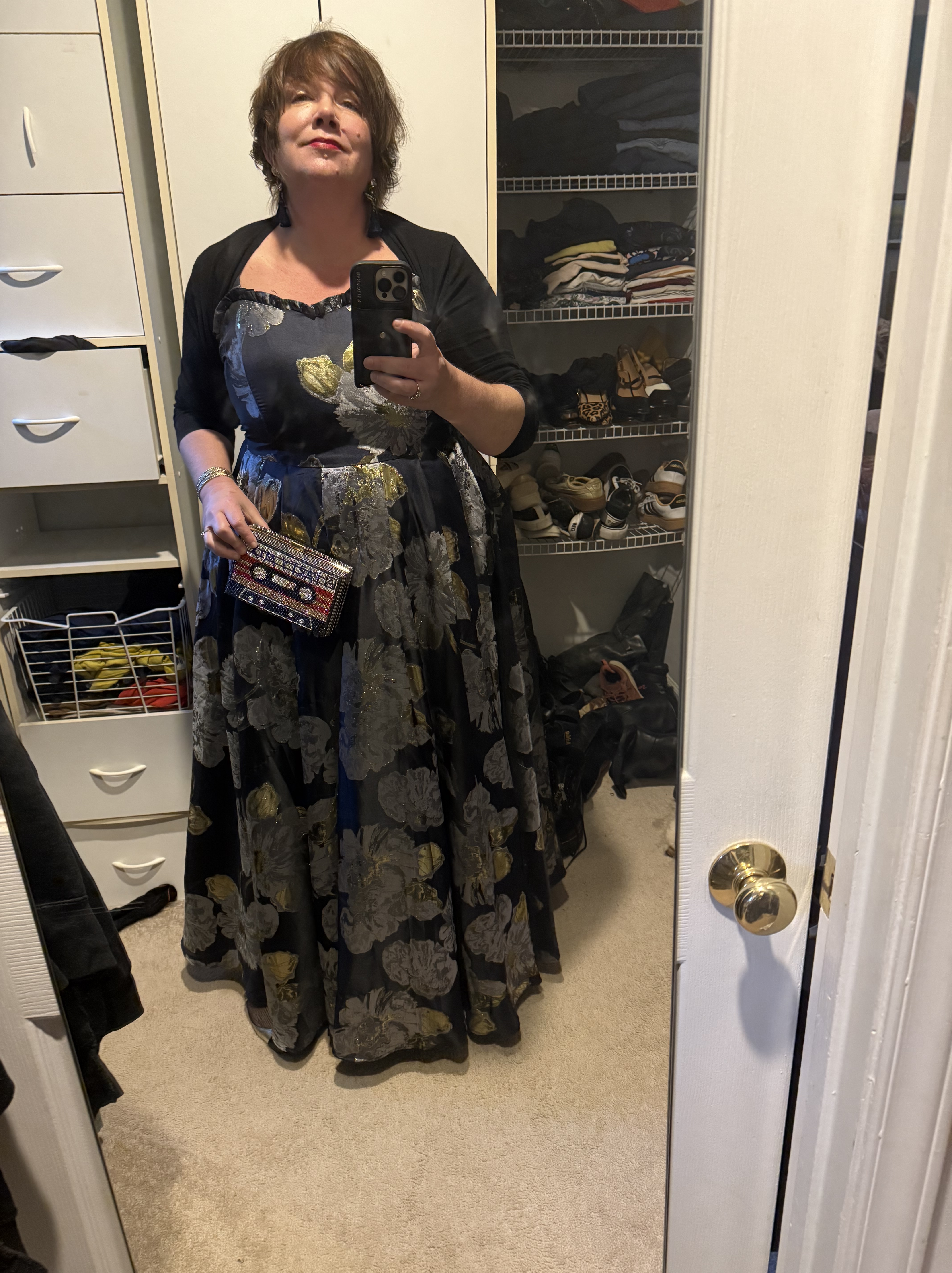 The Event: I’m pleased to report that I’ve worn this dress twice already this season, which will either shock or delight the socialites, depending on how much of their identity rests on performative frugality. I don’t care. First was to a wedding back in November, which was one of the Top Five, All-Time Desert Island events for two of my Top Five, All-Time Desert Island people. Truly, there is no greater feeling in the world when people you love fall in love with each other.